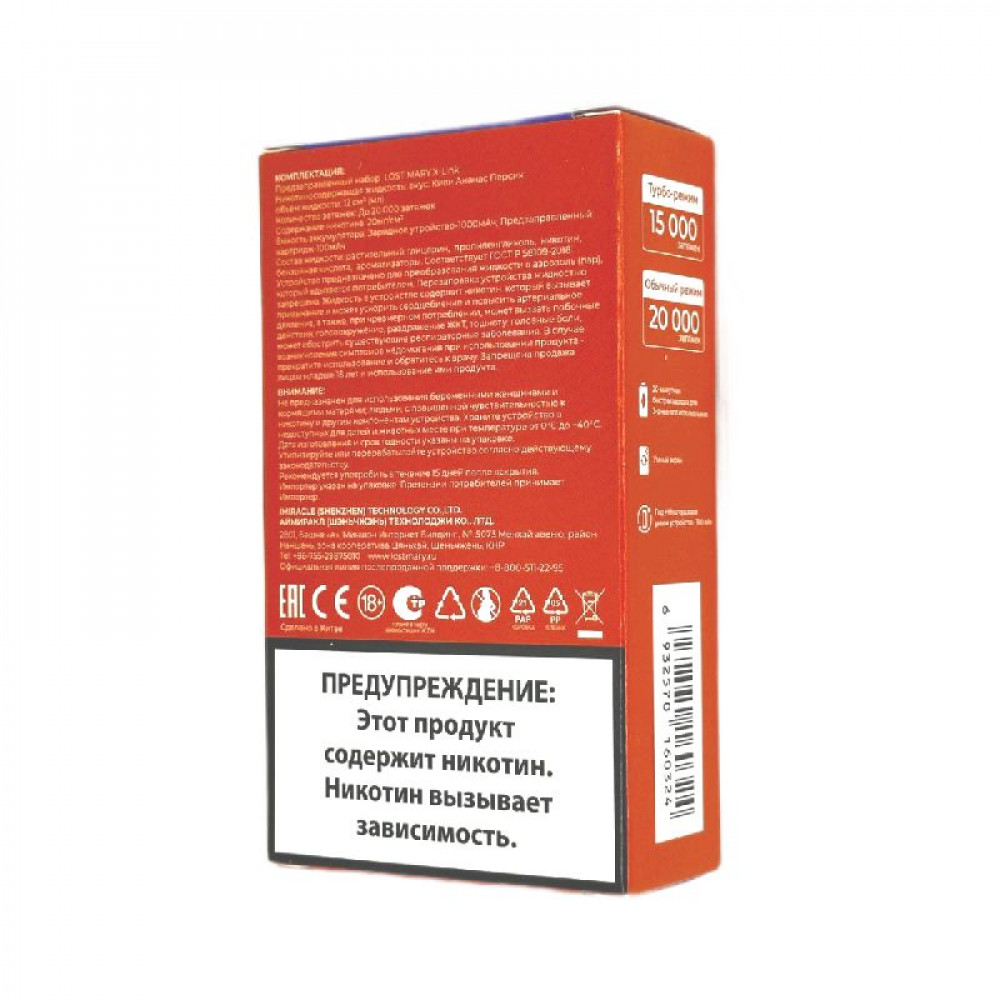 На складе Код товара: Lost Mary X-Link 20000 - Киви Ананас Персик